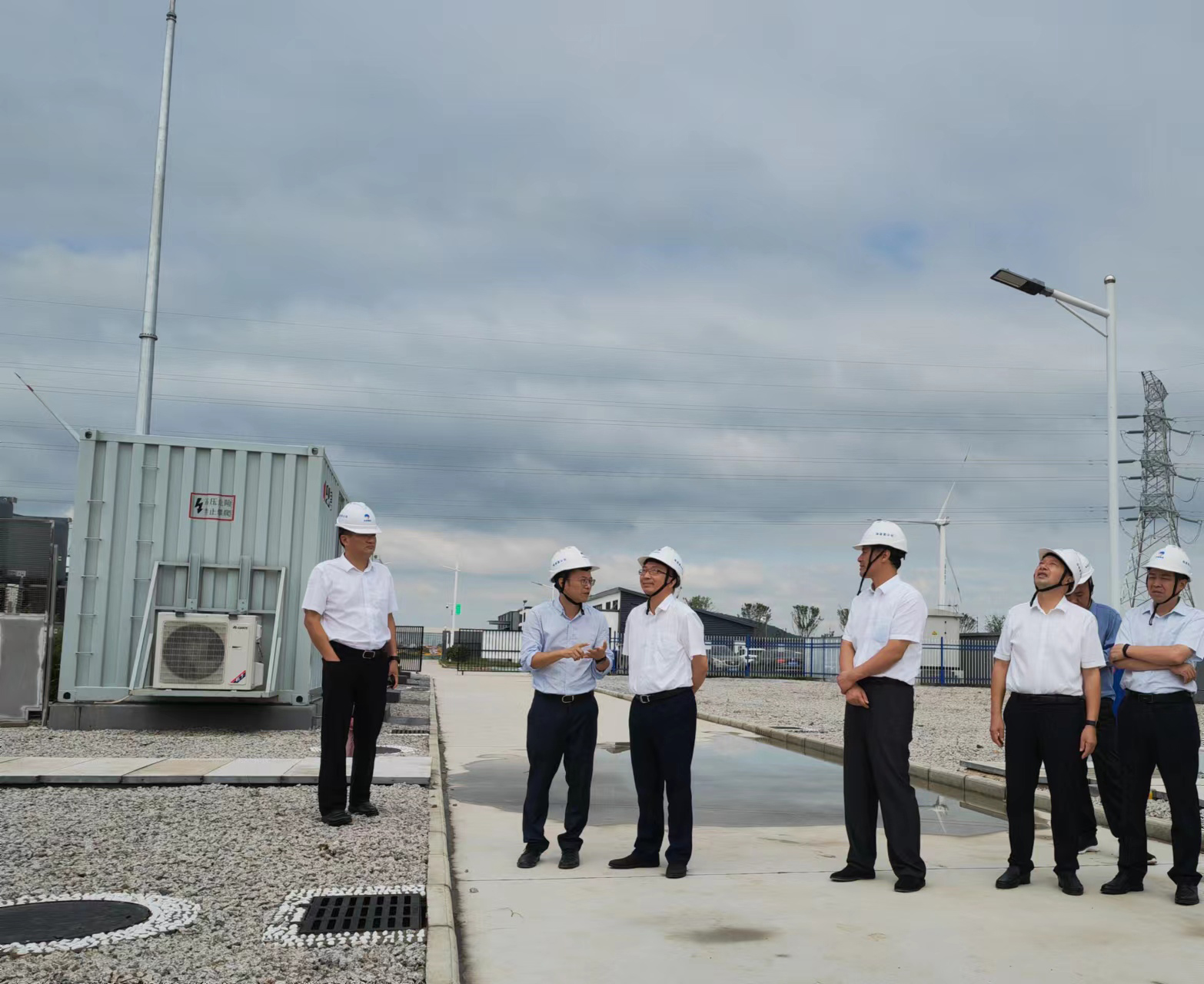 江苏沿海通威富云新能源公司董事长黄晶生介绍了项目组织管理架构、升压站和光伏区建设、渔光一体生态基地及尾水处理等相关情况。双方就新能源开发和生态养殖等内容进行了交流。