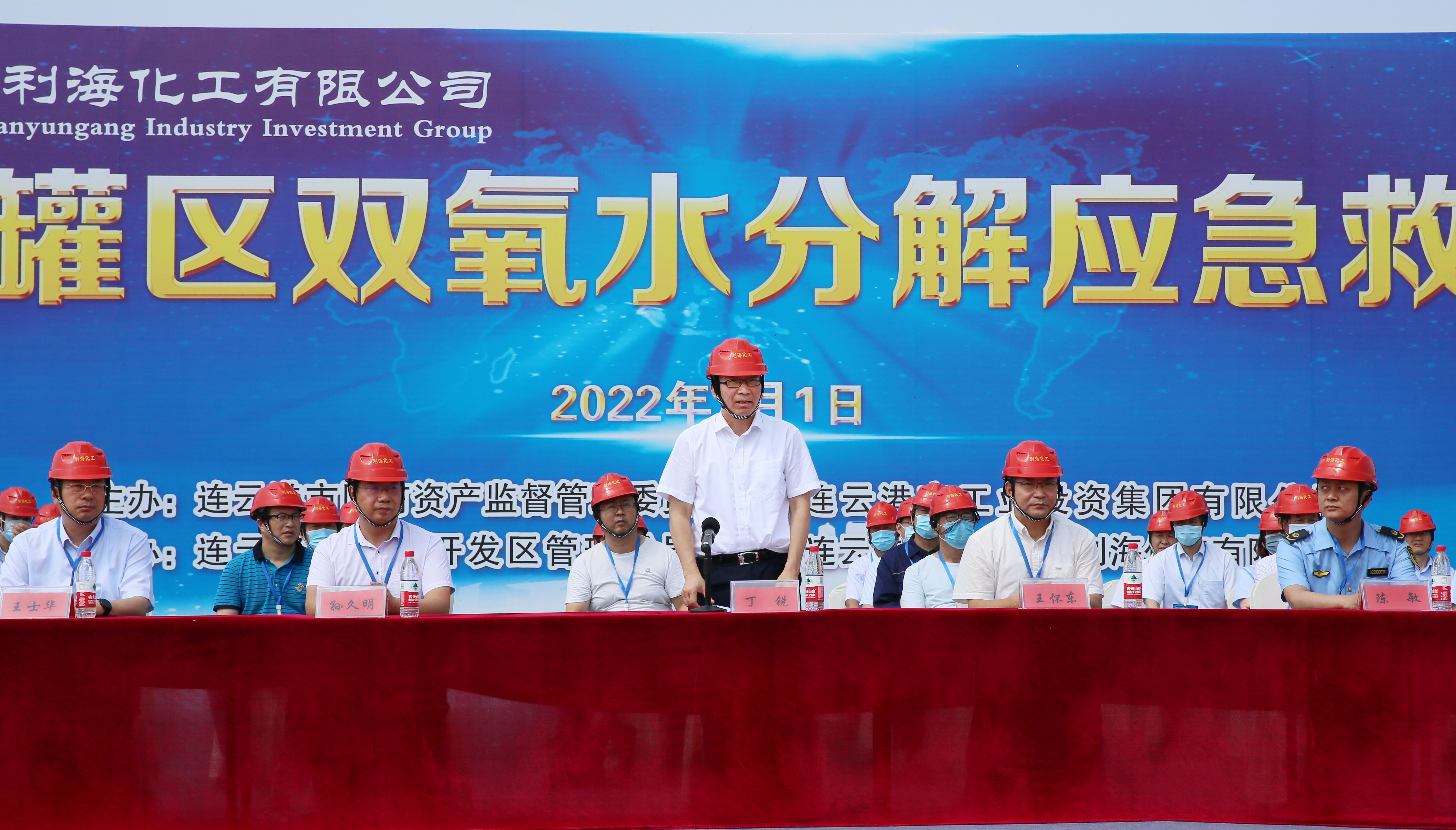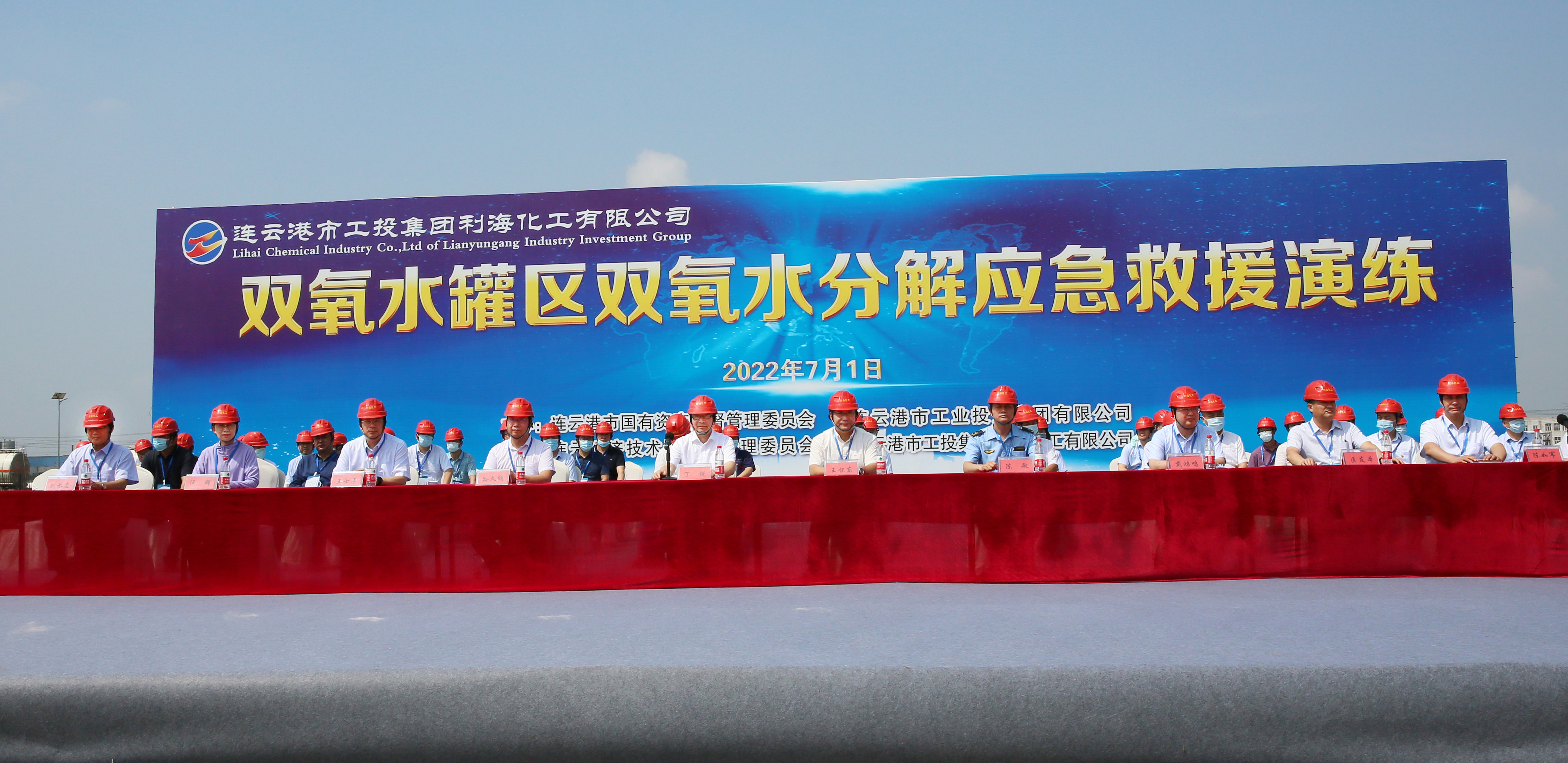 7月1日上午,半岛平台网站登录入口_半岛(中国)公司在利海化工公司开展双氧水罐区双氧水分解应急处置演练。市国资委党委委员、三级调研员王怀东,半岛平台网站登录入口_半岛(中国)公司安委会成员,各权属单位主要负责人、分管安全负责人观摩演练。半岛平台网站登录入口_半岛(中国)公司董事长、党委书记丁锐宣布演练开始并作点评。