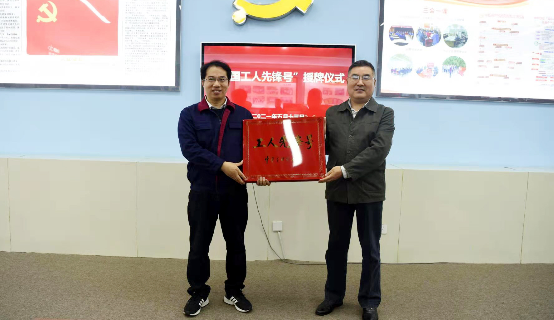 5月13日,市总工会副主席陈健到氨纶公司,为差别化氨纶研发项目组授予“全国工人先锋号”奖牌。半岛平台网站登录入口_半岛(中国)公司工会主席刘承志,市总工会劳动和经济工作部部长许小兵等参加授牌仪式。