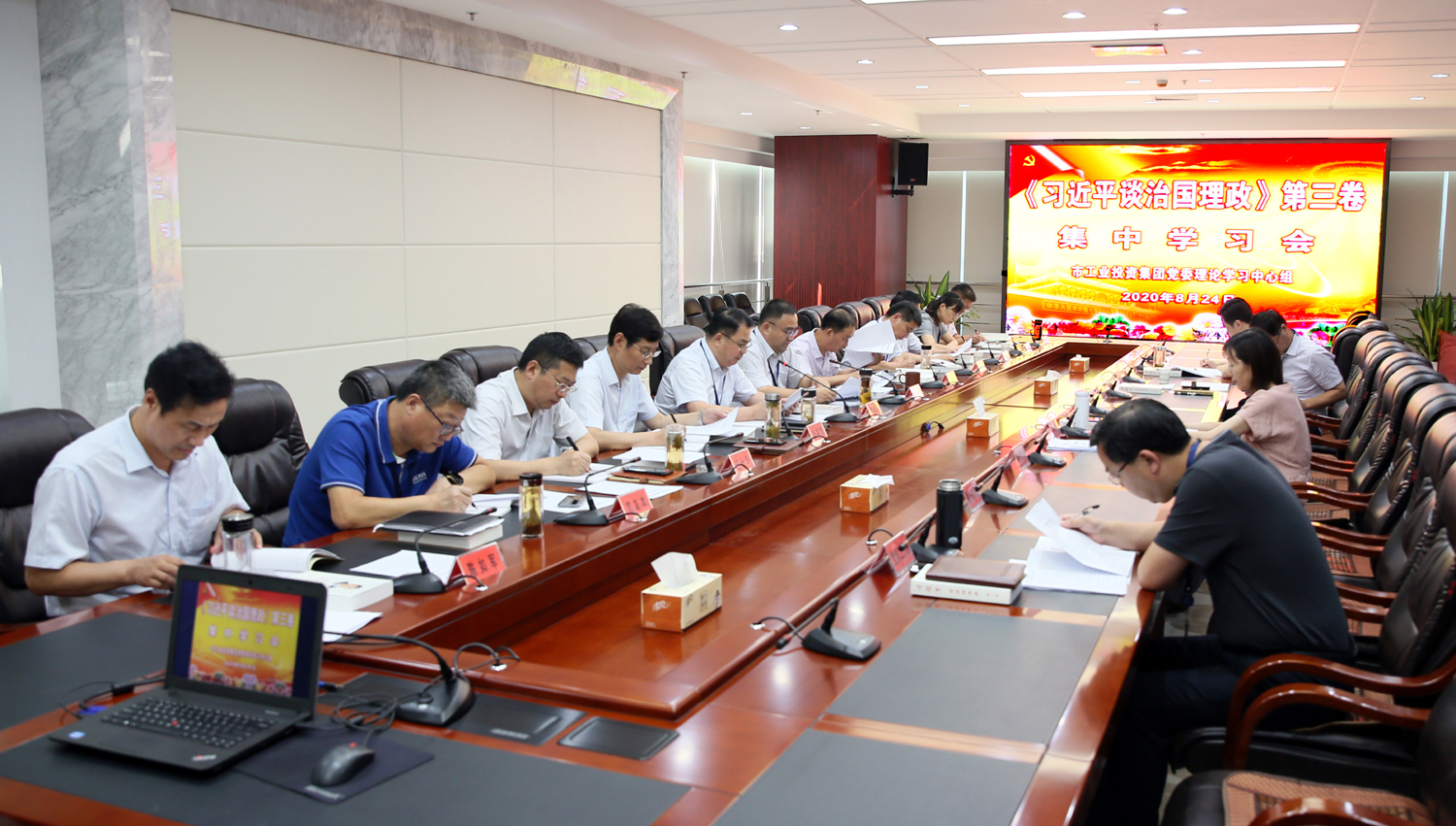 8月24日,半岛平台网站登录入口_半岛(中国)公司党委理论学习中心组召开集中学习会,专题学习《习近平谈治国理政》第三卷。党委书记、董事长杨龙主持学习会。