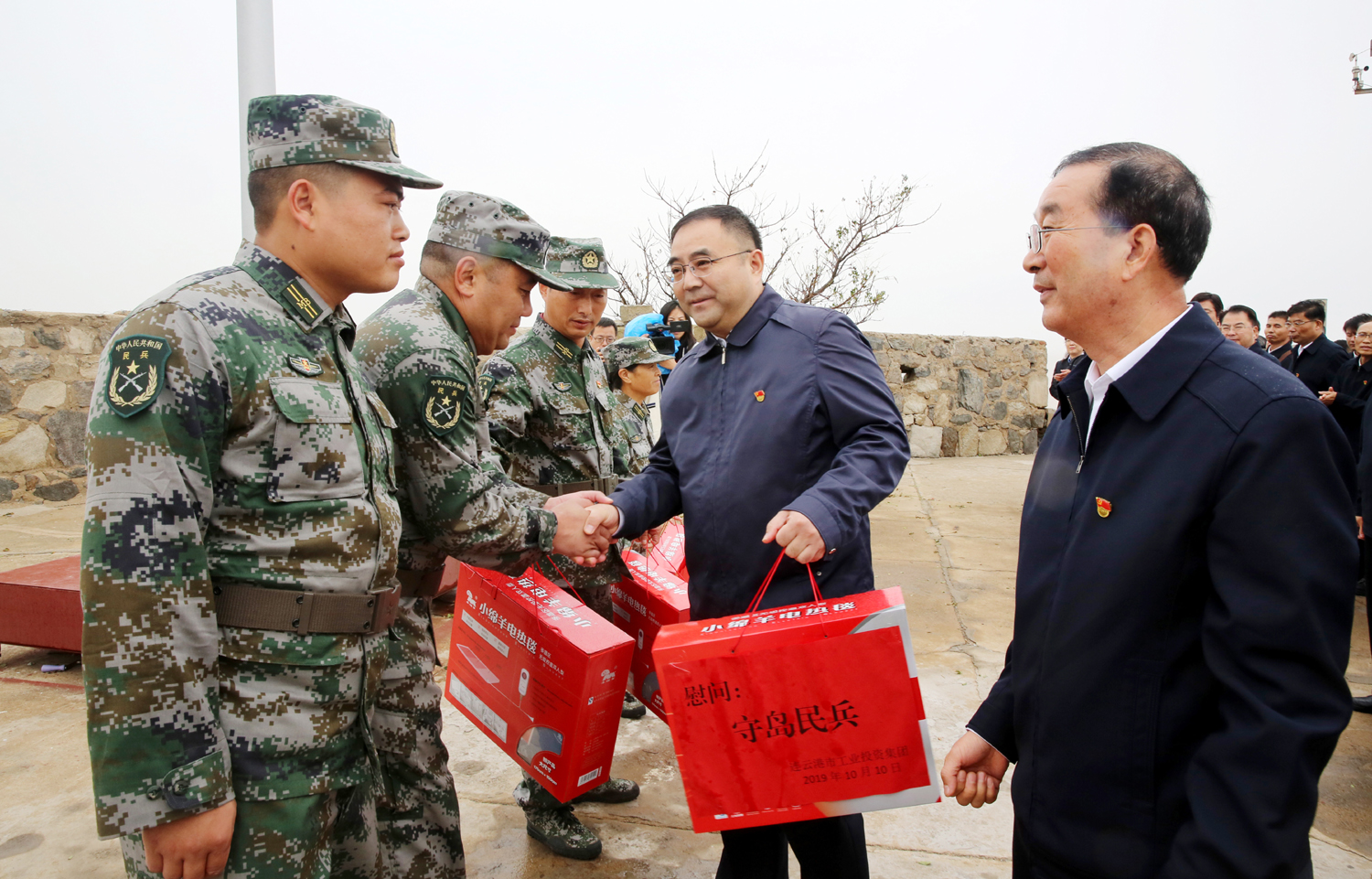 为进一步践行“不忘初心、牢记使命”主题教育,追寻“人民楷模”王继才、王仕花夫妇的守岛精神,10月10日,半岛平台网站登录入口_半岛(中国)公司党委书记、董事长杨龙,总经理胡建明等党委领导班子成员与机关部分党员、各单位党内先进代表等共100人,冒雨赴江苏省干部党性教育基地——开山岛,开展“学习人民楷模王继才、践行初心使命勇担当”党性教育活动。 在面积只有两个足球场大的开山岛上,全体党员参观了王继才同志生前工作生活过的场所,看望慰问王仕花和守岛民兵,举行庄严的升国旗和重温入党誓词仪式。在王继才先进事迹展览室,一件件实物和一幅幅图片,从不同角度、不同侧面生动的再现了王继才“岛就是家、岛就是国”,扎根海岛、献身海防的先进事迹和奉献精神。活动期间,大家还观看了纪录片《守岛32年》,认真聆听了王仕花讲授的关于守岛卫国32年,用无怨无悔的坚守和付出,在平凡的岗位上书写了不平凡人生华章的微党课。