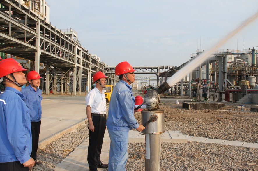 胡总实地查看了徐圩马二份分公司扒盐现场、利海公司“清污分流”项目、双氧水装置等情况,随机抽查了厂区消防设备,并对两个公司的当前及下一步安全生产工作分别提出具体要求:徐圩投资公司要持续强化安全生产工作,加大原料盐基地建设力度,重点突出对卤水、池板、廪基及滩场文明的高标准、严要求,切实加强滩地、人员、机械等生产资源的优化整合,打好盐田退让的“间隙战”。利海公司要坚持问题导向,积极整改近期安全检查发现的问题和隐患,强化责任担当,狠抓工作落实,确保产品经济效益最大化和安全生产无事故,以安全稳定的良好环境迎接新中国成立70周年。