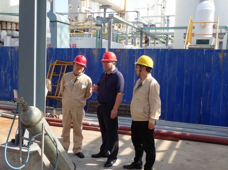 杨龙一行实地查看了氯碱公司氢气纯化技改项目、天然气制氢压缩机厂房现场和氨纶公司精制罐区、危废库等重点区域,就相关设备运行、安全防范情况进行详细了解。杨龙强调,新中国成立70周年即将到来,要把安全工作当成一项重要的政治任务,认真做好各个重点部位、关键装置等环节的排查和治理,提高专业化水平,做到立行立改。要提高安全生产意识,认真落实好安全检查、节假日应急管理和值班制度,强化对设备的检查维护和隐患整改,确保节日期间安全生产平稳运行。