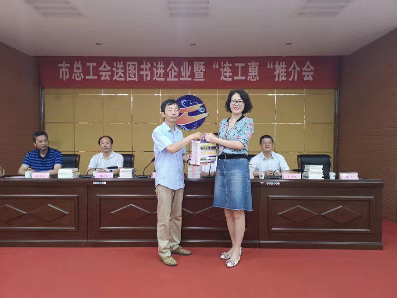 7月23日,连云港市总工会副主席孙月春一行,到市工业投资半岛平台网站登录入口_半岛(中国)开展赠书活动。半岛平台网站登录入口_半岛(中国)公司工会主席刘承志参加活动。