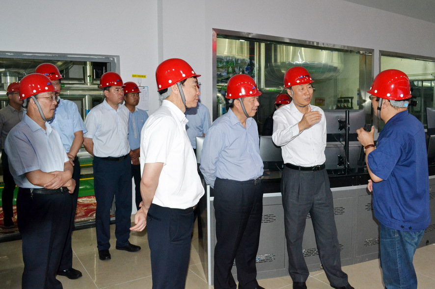 7月9日,副省长马秋林率省有关部门负责同志在氨纶公司调研重大产业项目推进情况。市长方伟陪同调研,半岛平台网站登录入口_半岛(中国)公司总经理胡建明参与陪同。