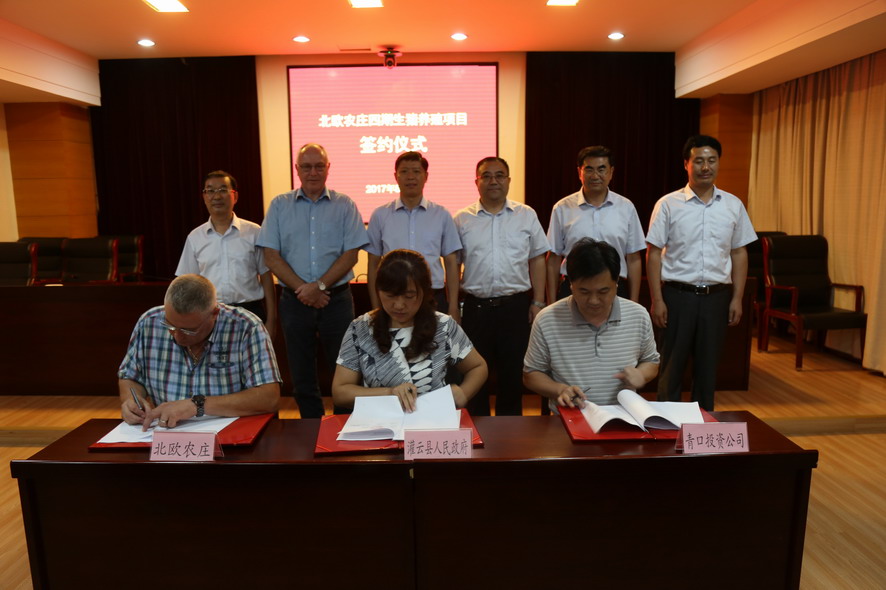 8月7日下午,北欧农庄四期生猪养殖项目签约仪式在灌云县行政中心举行。半岛平台网站登录入口_半岛(中国)公司领导杨龙、胡建明、陈如军,灌云县领导朱兴波、王庆嘉、张凌云,丹育公司董事劳伦斯·桑德高,连云港北欧农庄生猪养殖有限公司首席执行官杨林柏等出席签约仪式。
