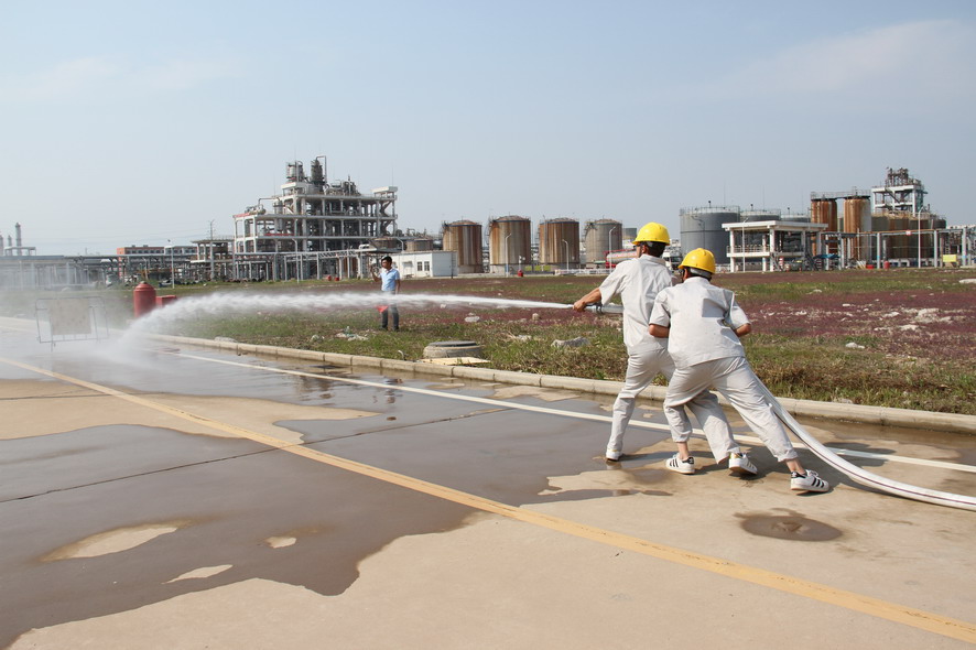 比武前,由消防教官对操作技巧、要领、安全注意事项进行了说明,各参赛队3人一组依次进行比赛,发令后,接水袋、连水枪、开消火栓、冲向目标、击中火源点,动作连贯无差错的情况下比速度,最后黄化制钙代表队以15.07秒的优异成绩获得一等奖,金桥制盐代表队、神特新材料代表队获得二等奖,供电公司代表队、氨纶公司代表队和台北投资公司代表队获得三等奖。