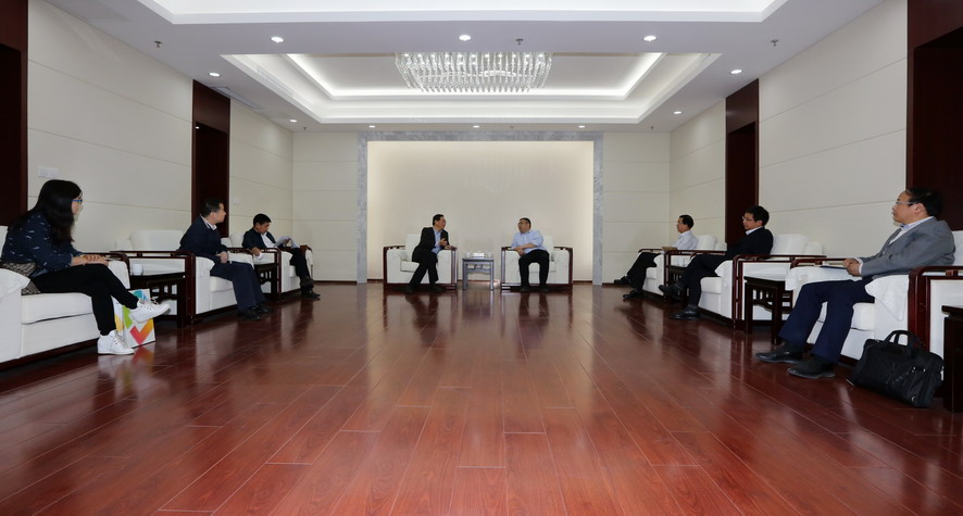 5月7日上午,江苏海外企业半岛平台网站登录入口_半岛(中国)董事长黄宏亮一行4人来我公司洽谈合作,公司董事长、党委书记杨龙、总经理胡建明、副总经理杨国新等亲切会见了黄董事长一行。双方就有关合作事宜进行了深入交流。