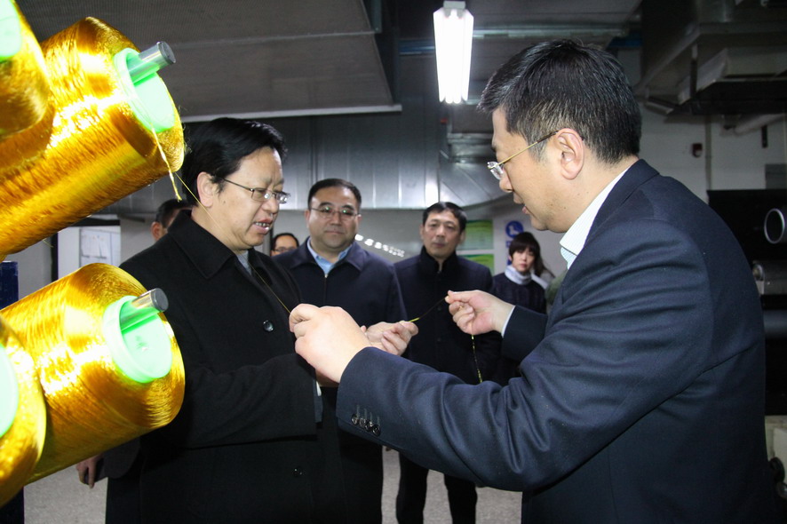 参观了奥神新材料公司展厅,现场观摩聚酰亚胺高性能纤维生产车间产品生产过程,并听取该公司发展状况和产品相关情况介绍。