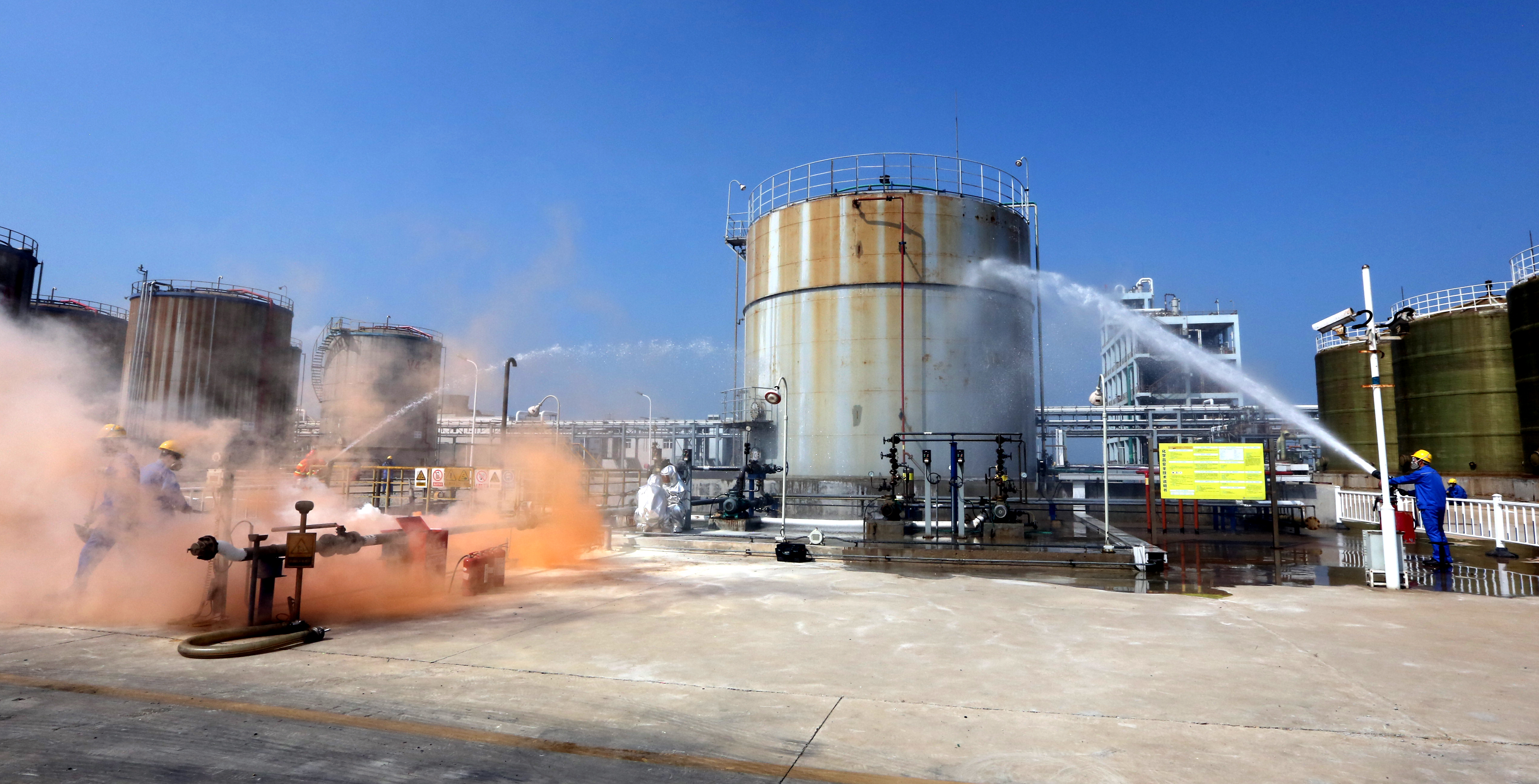 本次演练模拟甲苯在卸车时由于卸车管道泄漏,跨接线断裂导致在输送过程中因静电积聚产生电火花引燃甲苯,卸车管道周围着火。事故从现场处置、专项预案以及最后启动公司级应急预案,各方组织抢险救援,以实战检验职工队伍应急响应、快速处置突发事故的能力,检验应急预案的实用性。在现场指挥沉着冷静的指挥下,整个应急救援演练现场有条不紊,忙而不乱,经过20多分钟紧张救援后,圆满完成现场各项处置任务。