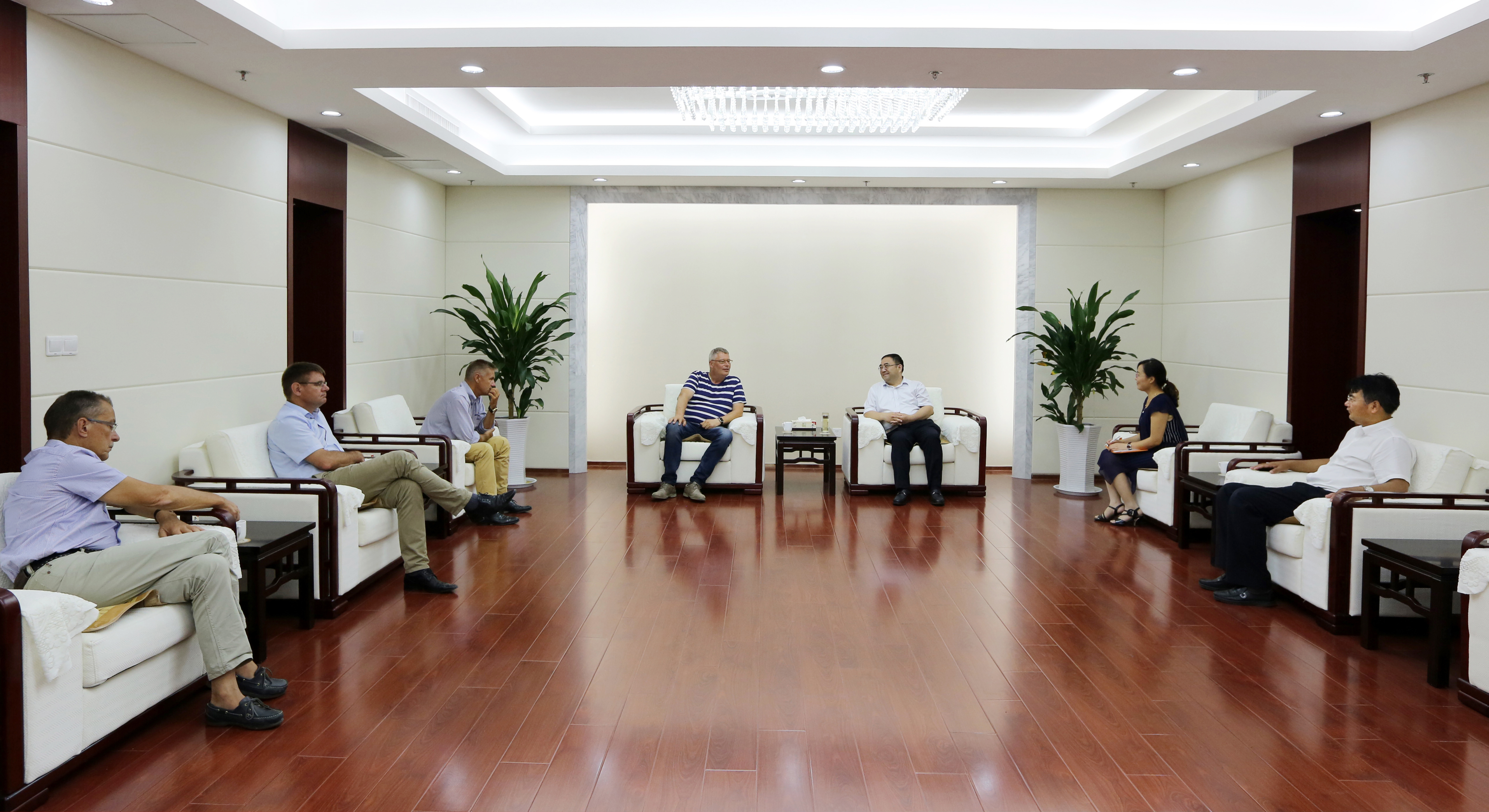 6月21日下午,半岛平台网站登录入口_半岛(中国)公司董事长、党委书记杨龙在总部会见前来拜访的丹麦北欧农庄董事会主席克劳斯·伊沃斯、连云港北欧农庄生猪养殖有限公司首席执行官杨林柏等一行,双方就深化项目合作进行了深入细致的交流。灌西投资公司董事长、党委书记王德志参加会见。