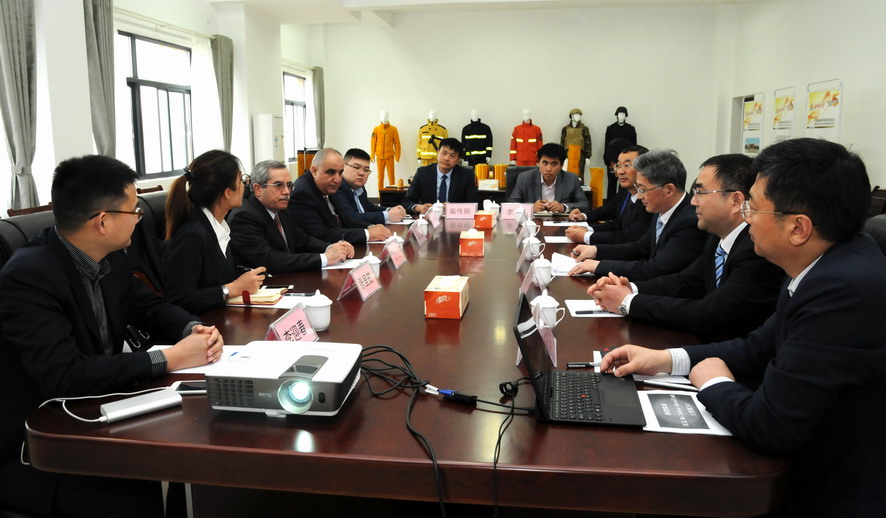 4月14日,约旦驻华大使叶海亚·卡拉莱 (Mr. Yahya Qaralleh)一行到半岛平台网站登录入口_半岛(中国)公司考察。市政府党组成员胡文杰,公司董事长、党委书记杨龙,总经理胡建明,副总经理张其海、王士华等人对约旦驻华大使一行的到来表示热烈欢迎。在先后考察了神特新材料公司和奥神新材料公司的生产线和产品后进行了座谈交流,大使对我公司生产的新材料产品和先进的技术给予高度评价,表示将与半岛平台网站登录入口_半岛(中国)公司进行友好合作,将有关新材料产品在中东推广。