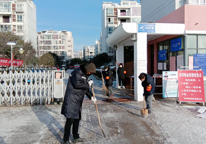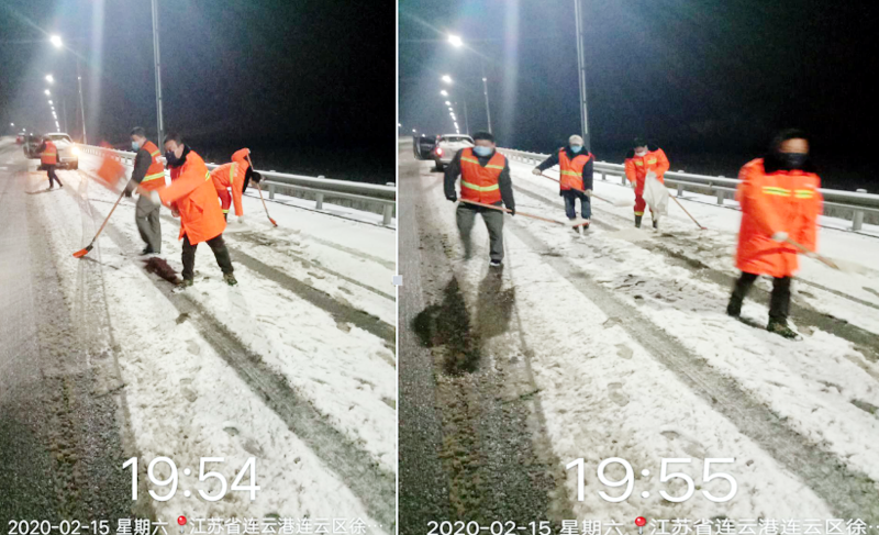 215日晚1800时,徐圩悦升公司班子成员及各分公司党政负责人全员出动,带领18名突击队员快速赶赴新区上海路、徐圩大道、徐新路、金港路等主要交通要道,连续奋战4个多小时,对桥梁、弯道等重点防滑路段进行清雪防冻处理,共铺洒融雪剂10余吨。“香河情缘、幸福家园”两个职工小区防控疫情值守人员,不惧严寒,冒着大雪,在小区加强巡逻防控。该公司应急大队按照徐圩新区防疫指挥部要求,配合社区对珠江钢管相关路道进行封闭管控。