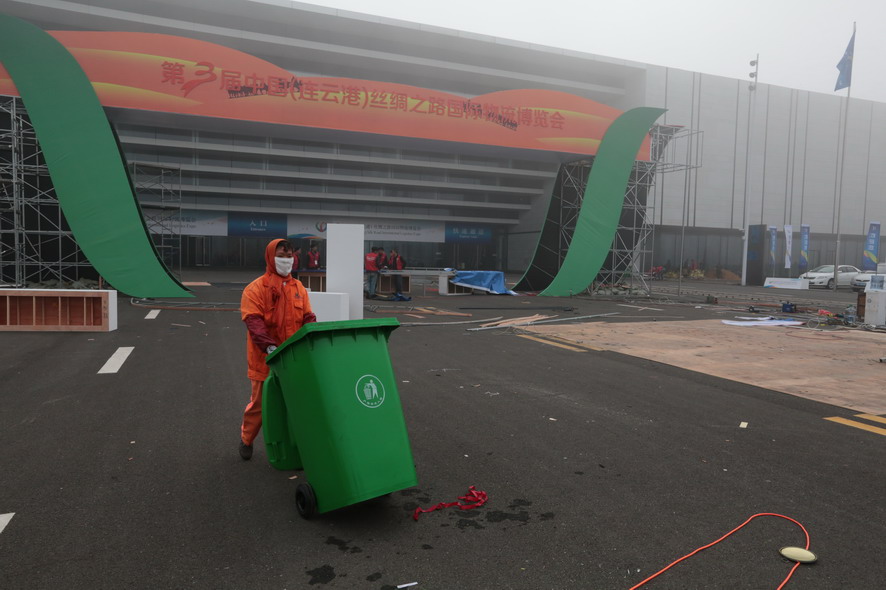 另外,该公司垃圾清运项目部将承担“连博会”期间的各类垃圾清理清运任务,目前已将100余只垃圾桶放置到展馆规定地点,2台垃圾清运车也准备就绪待命。