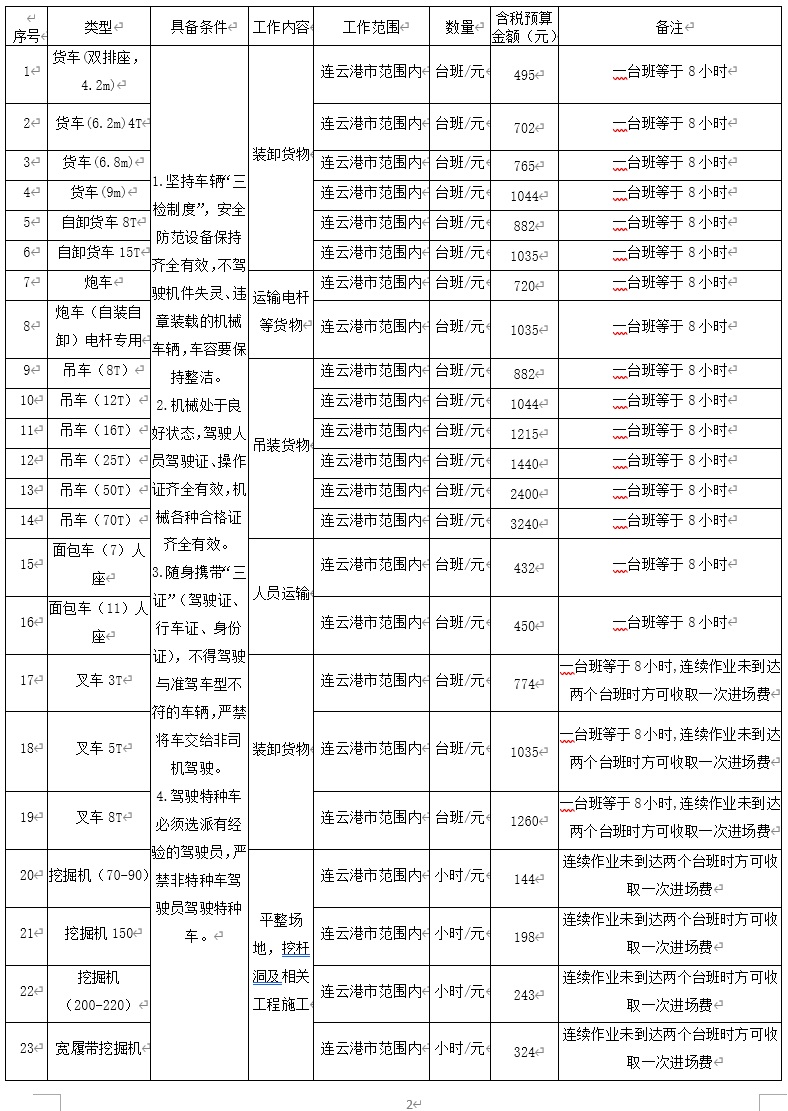 2.采购内容:连云港工投半岛平台网站登录入口_半岛(中国)供电工程分公司机械、车辆租赁