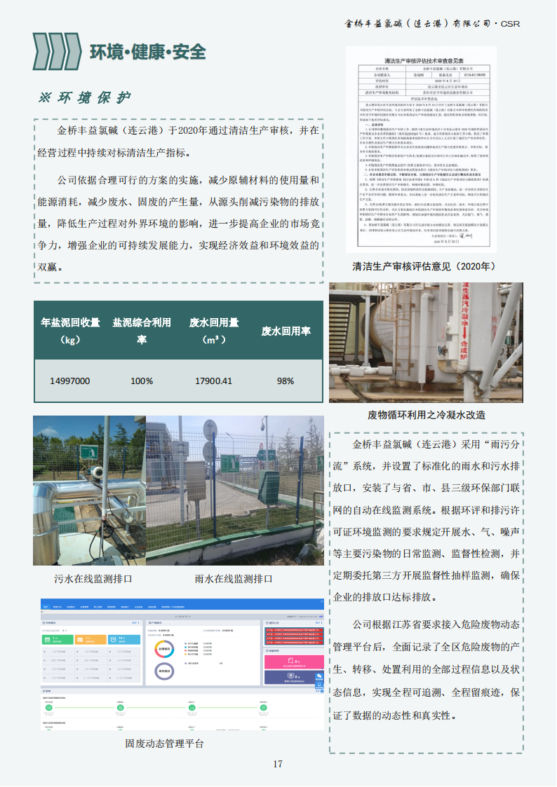 金桥丰益氯碱(连云港)有限公司2023年可持续发展报告公示