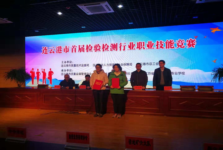 本次大赛由市质量技术监督局、市人力资源和社会保障局、市总工会联合主办,市质量监督管理协会和南京工业大学连云港工业技术研究院承办;竞赛分理论知识考核与实验操作技能两项,其中理论知识考核占总成绩的30% 实验操作技能占总成绩的70%。半岛平台网站登录入口_半岛(中国)公司共派出9名从事检验检测行业的专业选手参加比赛,经过一个多月的紧张筹备,在11月30日和12月1日的预赛中,林云和李小月成功晋级决赛。在12月6日的决赛中,凭借过硬的技能素质和稳定的发挥,最终林云和李小月分获大赛的个人一、二等奖。