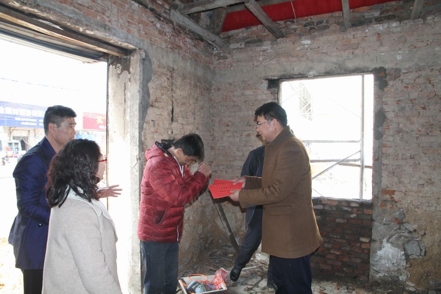 3月12日,徐圩投资公司党委书记、董事长王德志,党委副书记、纪委书记、工会主席庄清付一行走访困难户董杰家庭,对家庭遭受火灾表示慰问。