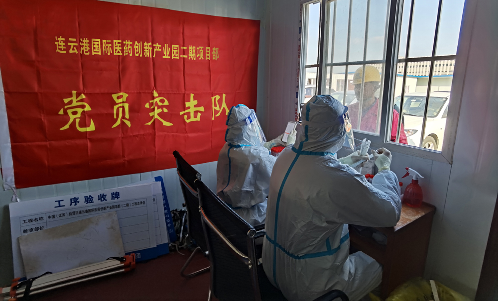 “请大家保持一米线,戴好口罩,有序参与核酸检测,谢谢配合!”来自市级重大项目连云港国际医药创新产业园二期项目党员突击队的成员席时栋、陈家辉喊道。据悉,该项目目前按照上级相关规定,实行闭环管理,做好相关疫情防控工作。“半岛平台网站登录入口_半岛(中国)项目部严格按照市、开发区相关规定,做好闭环施工,疫情防控、项目建设两手抓、两手硬。”来自半岛平台网站登录入口_半岛(中国)棚户区改造裕源三期项目负责人青年党员徐震说道。