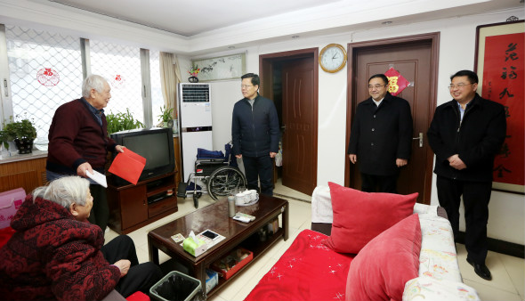 在春节即将到来之际,2月6日下午,市委组织部副部长、市党建办主任王玉祥带着新党章和慰问金,走访慰问我公司建国前老党员李景明,给他送去党的关怀和祝福。半岛平台网站登录入口_半岛(中国)公司董事长杨龙,党委副书记戴鸿鸣,公司领导吴再忠、孙政权、王志军陪同慰问。