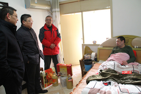 2月2日,在公司党委书记、经理孙政权陪同下,半岛平台网站登录入口_半岛(中国)公司领导匡友本一行走访慰问了巨龙农贸市场困难职工徐杰、刘元国等家庭,并送去了慰问品和慰问金。匡总详细询问了受访职工身体健康状况、家庭生活情况,鼓励他们坚定信心,战胜困难和疾病。公司工会主席王志军一同参加。﹙徐静﹚
