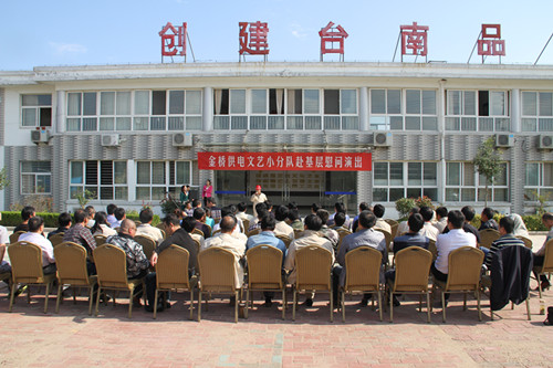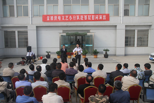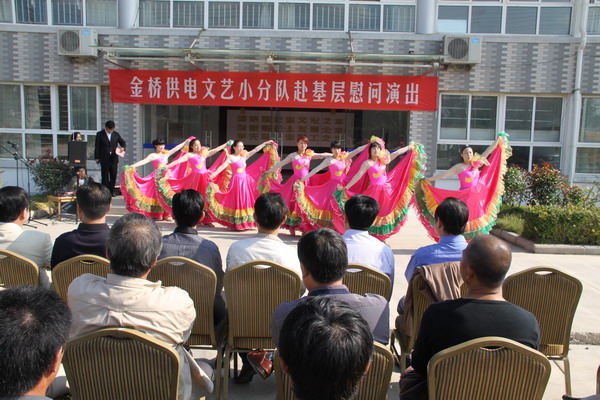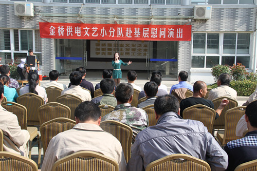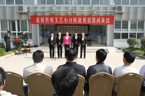 近日,为庆祝建国65周年,进一步践行党的群众路线,丰富基层职工文化生活,公司工会组织文艺小分队深入供电所等基层单位巡回慰问演出,为一线职工送去精彩纷呈的“文化大餐”,赢得了基层职工群众一致好评。 在临时搭建的舞台上,文艺小分队自编自演的的歌舞、相声、诗朗诵、器乐弹唱等丰富多彩的节目,贴近基层,贴近生活,讴歌金桥供电十年成就,展示金桥供电职工风采,赢得了现场观众阵阵掌声。中间还穿插了击鼓传花观众互动节目,基层职工踊跃参与,气氛活跃。最后,演出在会场全体人员齐唱《歌唱祖国》中圆满落下帷幕。 公司自成立以来,一直注重企业文化建设,利用多种形式活跃基层文化生活,满足员工多层次、多角度的精神需求。不仅加强基层单位“职工小家”建设,建立了“职工书屋”、职工活动室、乒乓球室、羽毛球活动场地等基础设施,还举办了职工运动会、篮球赛和文艺演出等活动。不仅发挥传统职工文化活动的优势,而且还创新具有时代特色文化活动的形式,不断增强员工的凝聚力和向心力。通过本次深入基层慰问演出,不仅为战斗在一线的基层职工献上一份精神“大餐”,同时也展示了金桥供电的良好作风和企业形象。(赵艳)