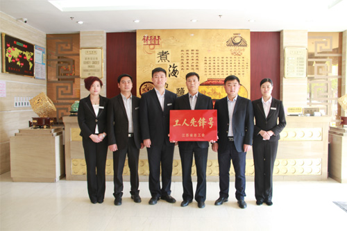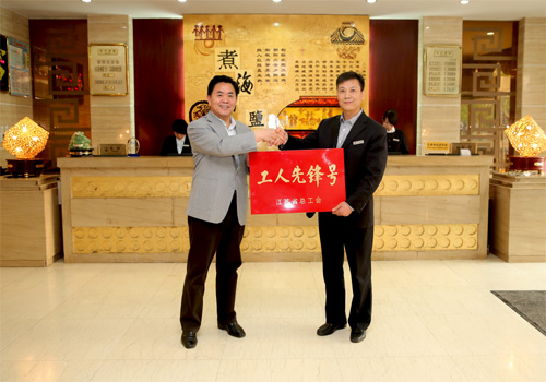 五一前夕,半岛平台网站登录入口_半岛(中国)公司董事长、党委书记顾永庚向荣获2014年度江苏省“工人先锋号”荣誉称号的公司淮盐大酒店授牌。顾董事长勉励淮盐大酒店全体员工继续发扬这种争创一流的巨大热情和无穷智慧,珍惜荣誉再创佳绩,继续担当服务行业的领跑者。这是淮盐大酒店获得2013年连云港市“工人先锋号”和2012年连云港市“五一巾帼标兵岗”后又一荣誉。