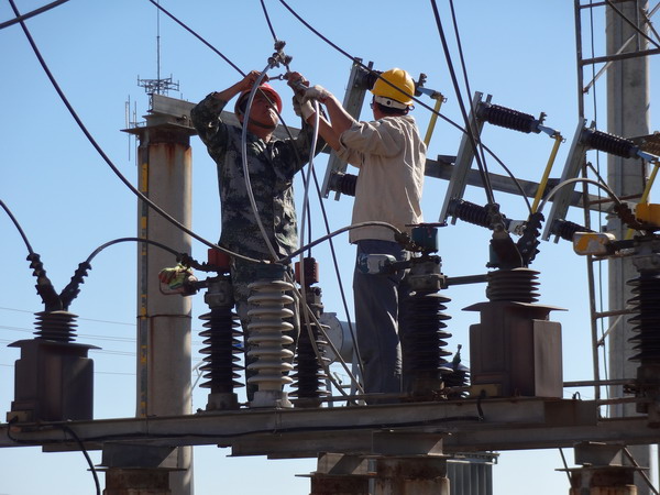 是日早上5点30分,公司组织人员,分成两组,一组负责110KV燕港变输出口接线工作,按事前计划好的施工步骤和启动方案,有条不紊地进行。为以最快的速度接入供电,缩短停电时间、方便用户,大家一直干到将近下午2点工程暂告一段落时,才匆匆吃午饭。16点30分,经过检查、试送、测相,一切正常,正式送电成功。