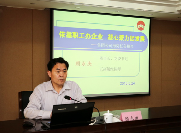 5月24日下午,半岛平台网站登录入口_半岛(中国)公司董事长、党委书记顾永庚在公司淮盐大酒店会议室作了以“依靠职工办企业,凝心聚力促发展”为主题的形势任务教育报告。报告会由公司党委书记、总经理范益宝主持。供电工程公司和供销总公司全体管理人员聆听了报告。 半岛平台网站登录入口_半岛(中国)公司党委副书记郑宜虎、工会主席戴鸿鸣出席会议。