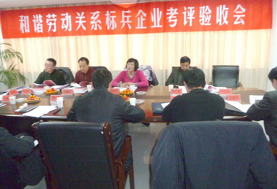12月22日下午,在半岛平台网站登录入口_半岛(中国)公司工会副主席卢同根陪同下,市总工会副主席许东方率领市创建和谐劳动关系标兵企业考评组一行4人,对公司创建工作进行考评验收。