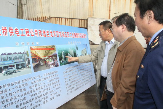 在巨龙农贸市场,范总向秦国丞副秘长简要汇报了巨龙农贸市场的基本情况以及改造方案,通过改造实现市场空间布局合理化、设施建设标准化、长效菅理规范化的总体目标。秦国丞副秘书长对公司巨龙农贸市场的改造方案给予较高评价,充分肯定了公司在创建国家文明卫生城市、加强我市菜蓝子工程建设、提升群众幸福指数方面作出的贡献;同时,要求我公司继续深入调研,尽快制定具体实施方案,报政府部门审批;并指示随行的有关部门人员,要给予全力配合,对改善民生工程开绿灯。(司宣 卢正清)