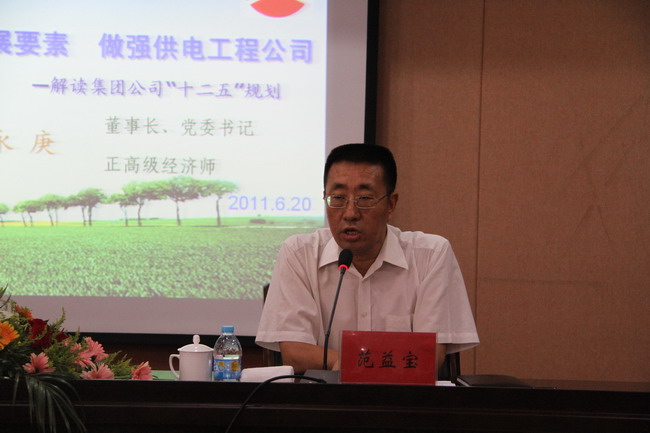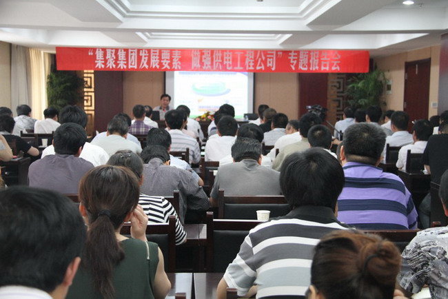 6月20日下午,半岛平台网站登录入口_半岛(中国)公司董事长、党委书记顾永庚来到公司作了题为“集聚半岛平台网站登录入口_半岛(中国)发展要素,做强供电工程公司”的专题报告,报告会由公司总经理、党委书记范益宝主持。公司领导班子及副科级以上管理人员聆听了报告。