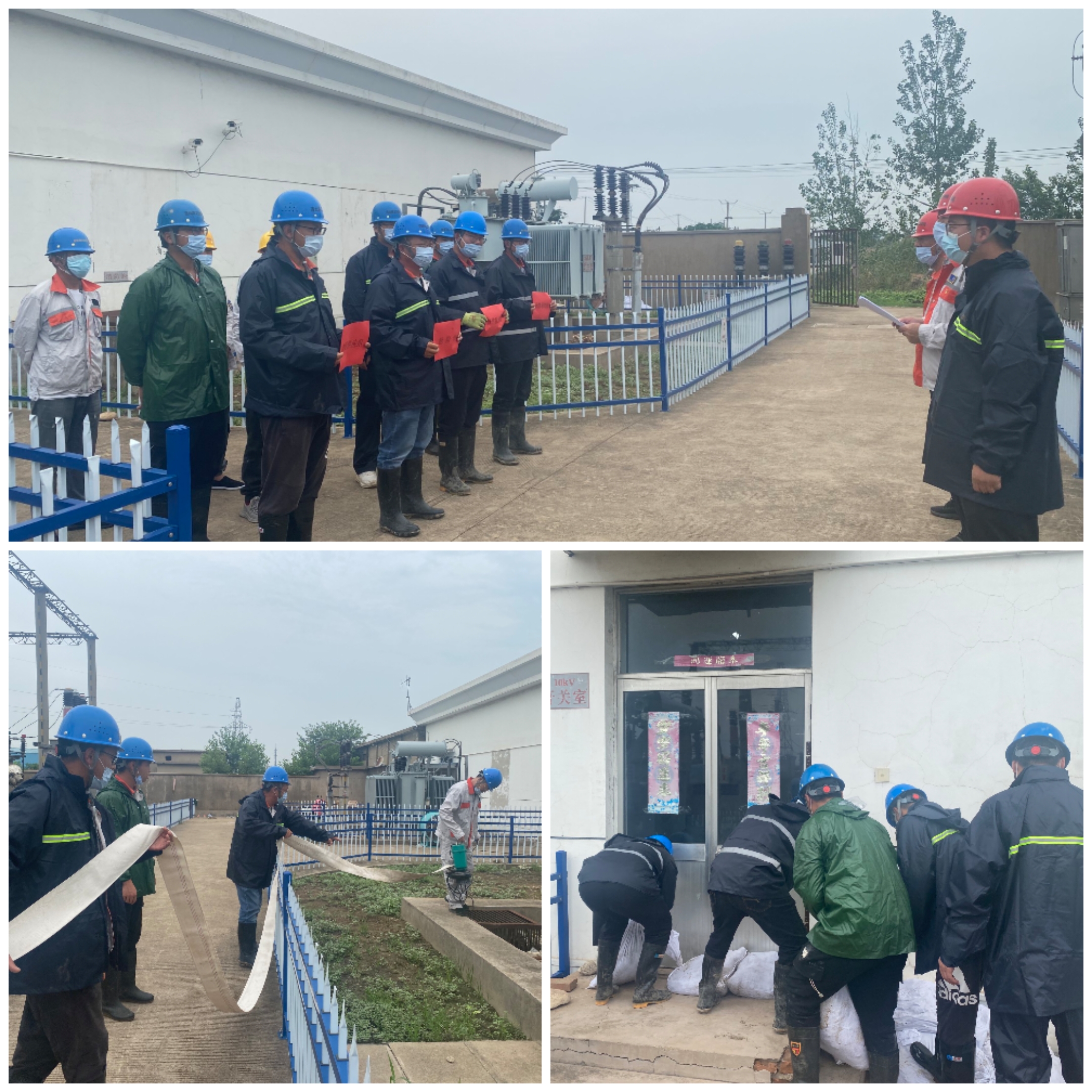 演练现场,工作人员开展汛前准备工作。检查运行水泵运转是否正常,控制回路及元器件有无过热,指示是否正常。检查站内外排水是否畅通,水井内有无杂物、淤泥,房屋、围墙及周边环境有无渗水隐患。检查站内防汛挡板等设施是否正常;检查防汛通信与工具是否正常使用。