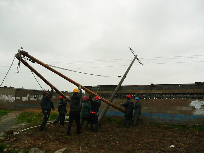 2月3日(正月初九)早上五点多,台北供电所电力抢修值班室电话急促响起,变电所操作工反映10KV太和线跳闸失电。10KV太和线是台北供电所非常重要的一条供电线路,是向顺天木业、苏交半岛平台网站登录入口_半岛(中国)、市政沥青等大型企业供电的重要通道,失电意味着企业生产停工。接警后,供电所外线组组长孙忠青立刻带人沿线全面检查。经过两个小时的排查,终于发现处于线路末端的高速公路低压线路的五根电杆被施工的挖掘机 撞断拉折。获此情况,所领导立即组织人员,准备材料,协调吊车,安排运送电杆。这时天空正下着小雨,更增加了施工的难度。为了尽快抢修,恢复供电,抢险队伍加速向事发地点开进,寒风中的雨滴,打在职工的头上脸上,大家毫不在意,一心扑在抢修线路上。运送电杆的道路泥软地陷,机器吊装遇到死角,他们就肩扛手拉。为了抢时间,争速度,他们中午就在工地吃点快餐。在全体职工的共同努力下,到下午五点左右全面完成了抢险工作。