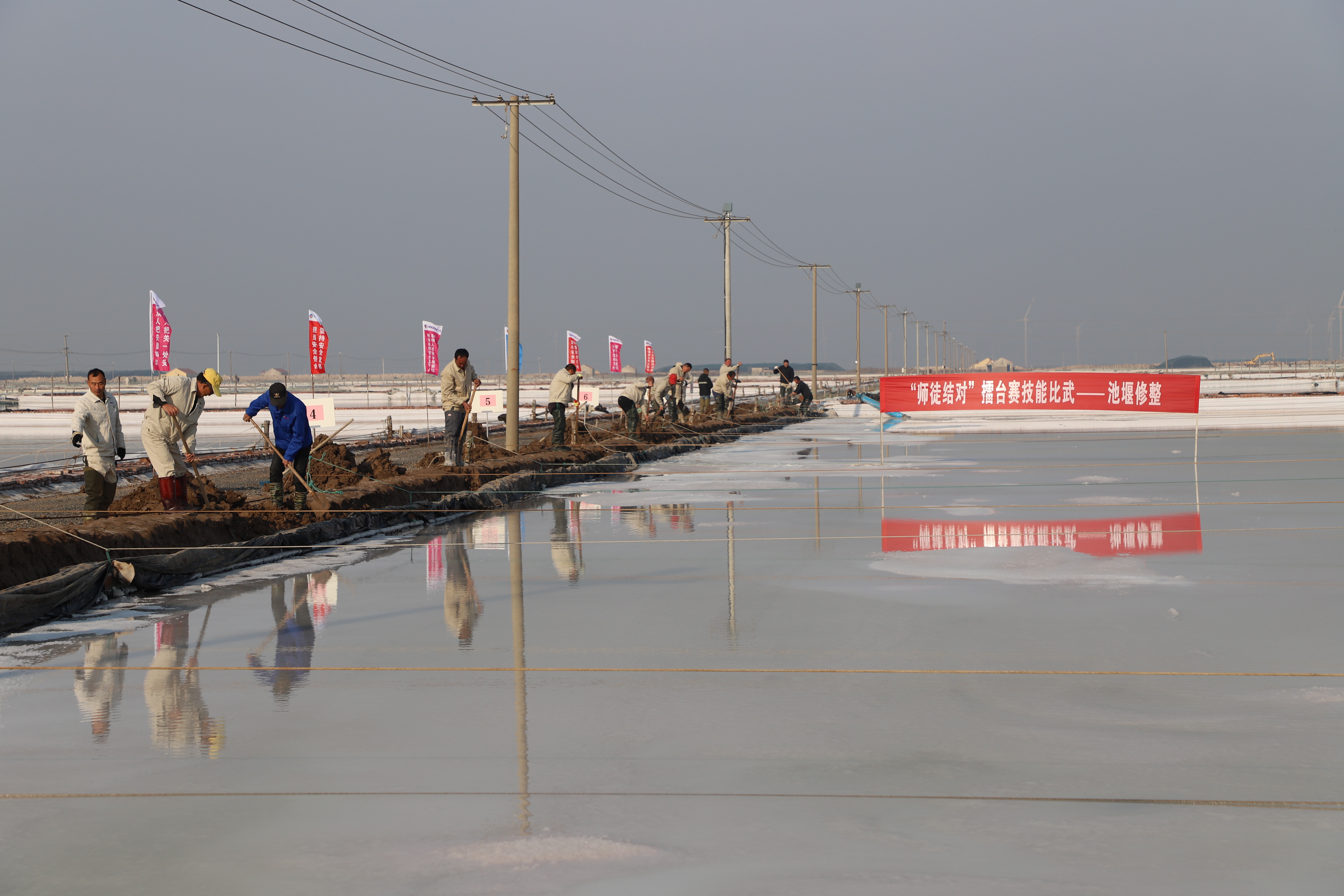寒冬时节,暖阳之下,盐廪之旁,晒得黝黑的盐场产业工人们按照竞赛的考核标准,做熟泥、打堰墙、做堰顶,护埝顶、夯埝坡、清塘底,见证了一场技能比拼的盛会。经过一天的鏖战,卢正兵、靳新邦、匡洪忠师徒取得了池堰修整的前三名;林树军、潘成军、胡继华师徒取得了土塘清淤的前三名。(西工)