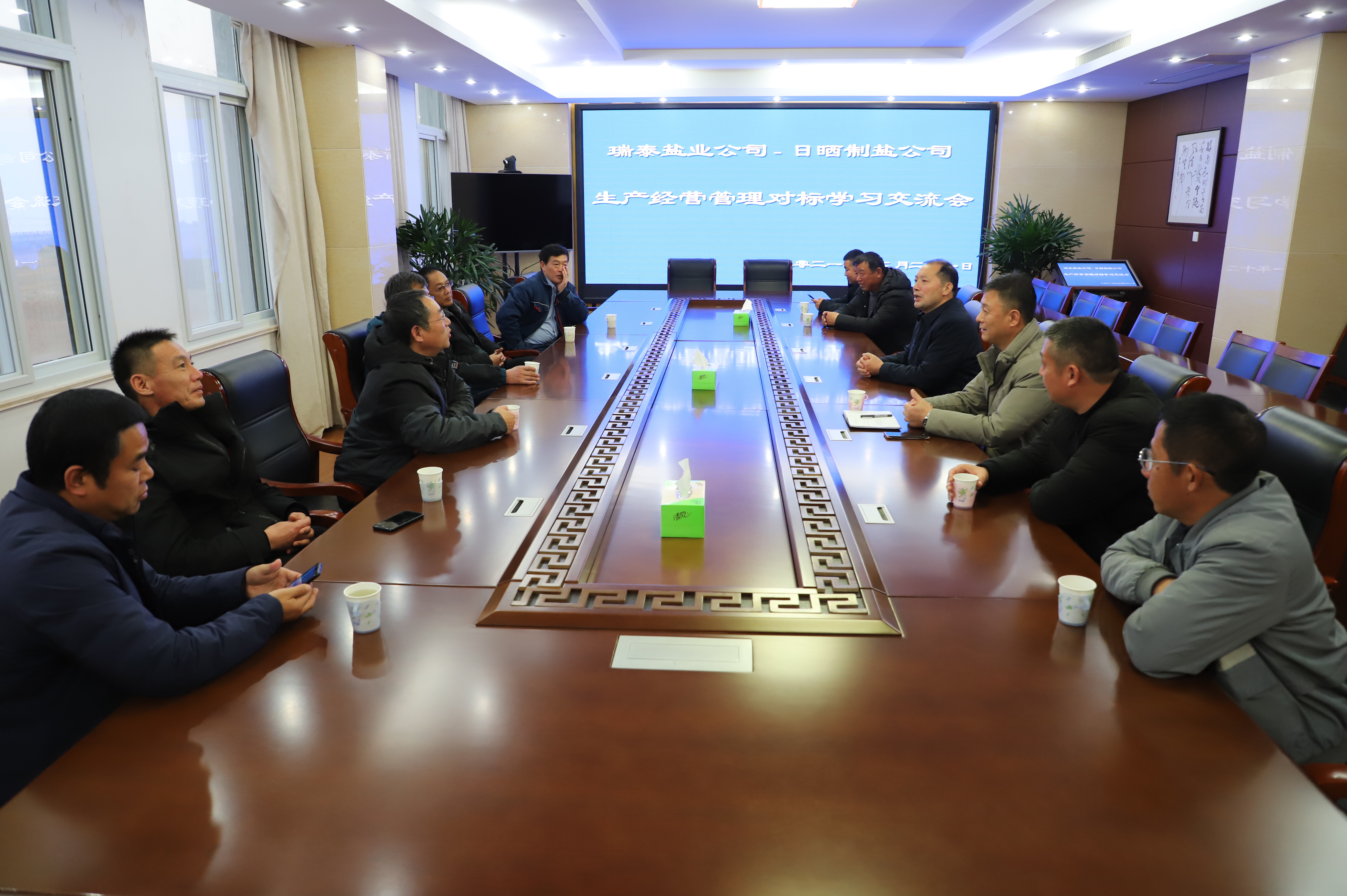 12月21日,瑞泰盐业公司对标学习交流团来日晒制盐公司开展交流学习活动。灌西投资公司党委书记、董事长、总经理李国文、常务副总经理吴卫平及日晒制盐公司相关单位部门负责人出席学习交流会。