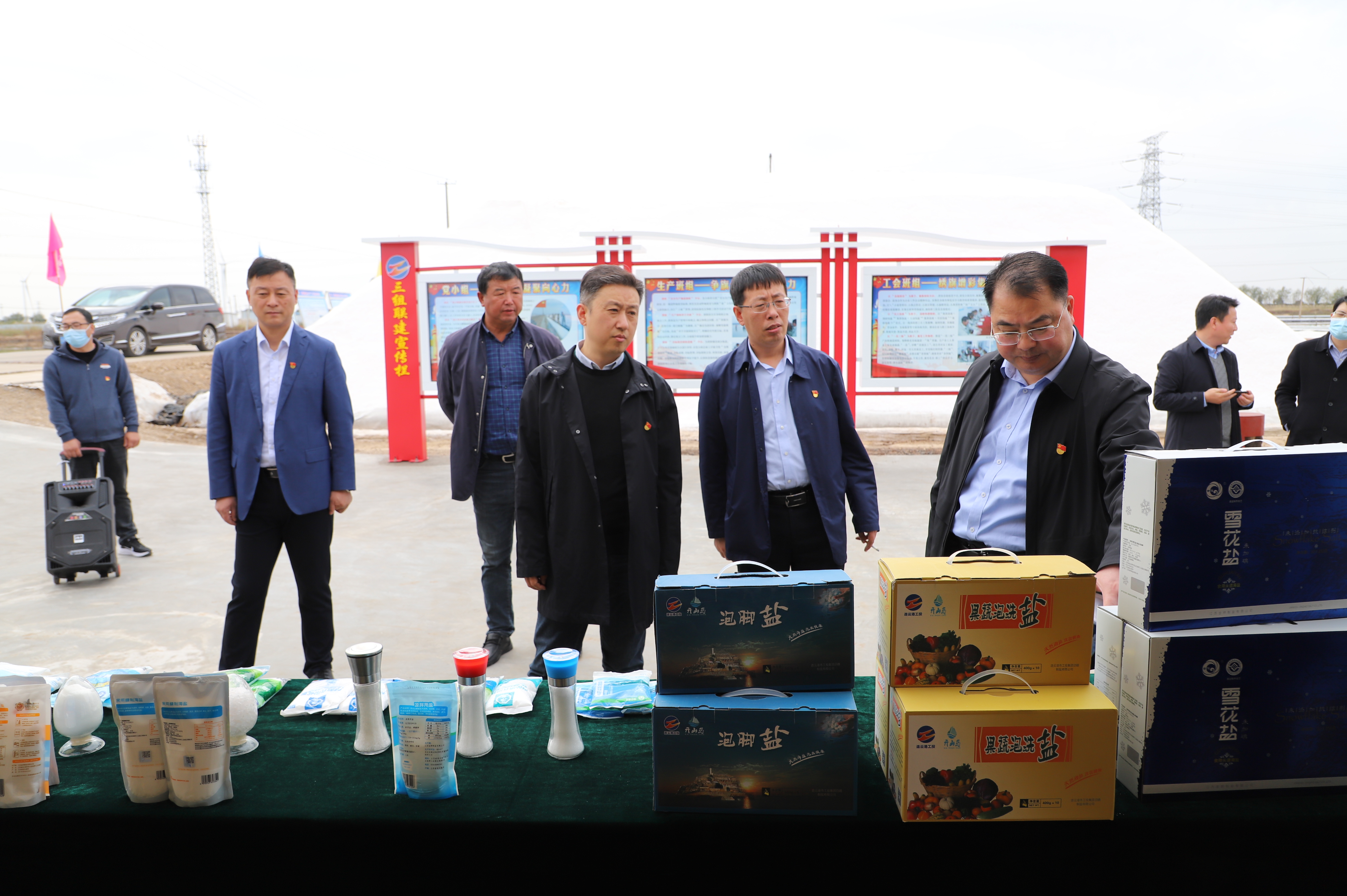观摩团一行首先到新河制盐分公司的0班,现场参观了扒盐生产工作情景和食用盐系列产品展示,了解日晒制盐概况和制盐工艺流程。在新河制盐分公司的八班,参观了班组活动室,观摩盐池机械活碴实操演练,听取公司的“一星三制”产改工作和“三组联建”等党建工作介绍。在新河制盐公公司劳模创新工作室党支部,参观了支部阵地建设情况,观看了《“四+模式”助推劳模创新工作室党支部“双创双提升”》党建带工建创建纪实专题片,在金蓝领技术创新基地观摩了解三代扒盐机组技术革新历程、新式活碴机械推广应用等创新成果介绍。观摩团一路走、一路看,每到一处,观摩团人员都驻足观看,看生产、听介绍,详细询问生产情况,并提出建议和意见。