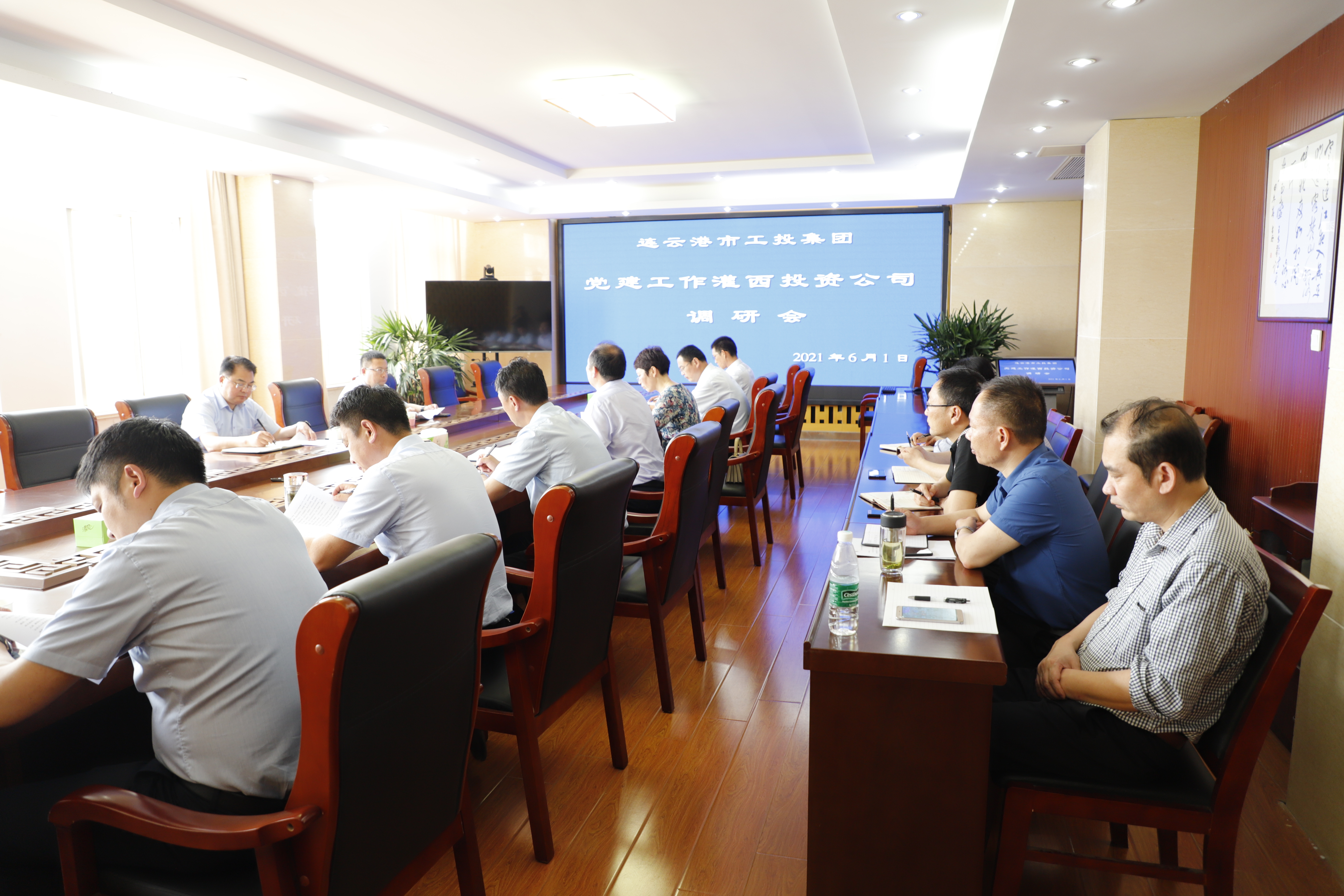 6月1日,半岛平台网站登录入口_半岛(中国)公司党委副书记戴鸿鸣在机关党委书记、党群工作部副部长冯家道陪同下,到灌西投资公司调研指导党建工作,灌西投资公司党委书记、董事长、总经理李国文,党委副书记、工会主席王宏陪同调研。