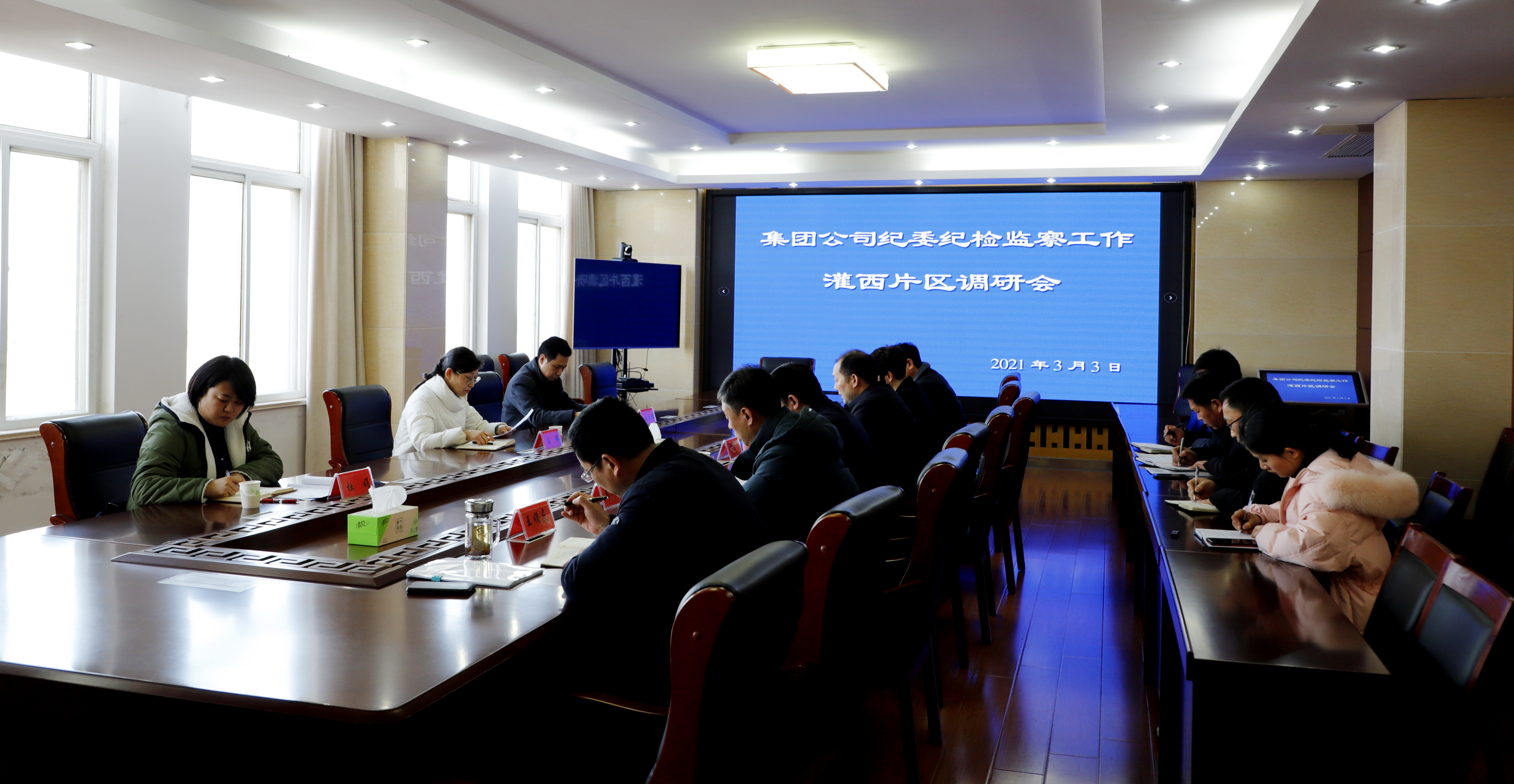 3月3日下午,半岛平台网站登录入口_半岛(中国)纪委书记汪群一行来灌西投资公司开展纪检监察池塘租赁工作专题调研。投资公司党委书记、董事长、总经理李国文、公司领导班组成员、池塘对外租赁领导小组成员及相关工作人员陪同参加。