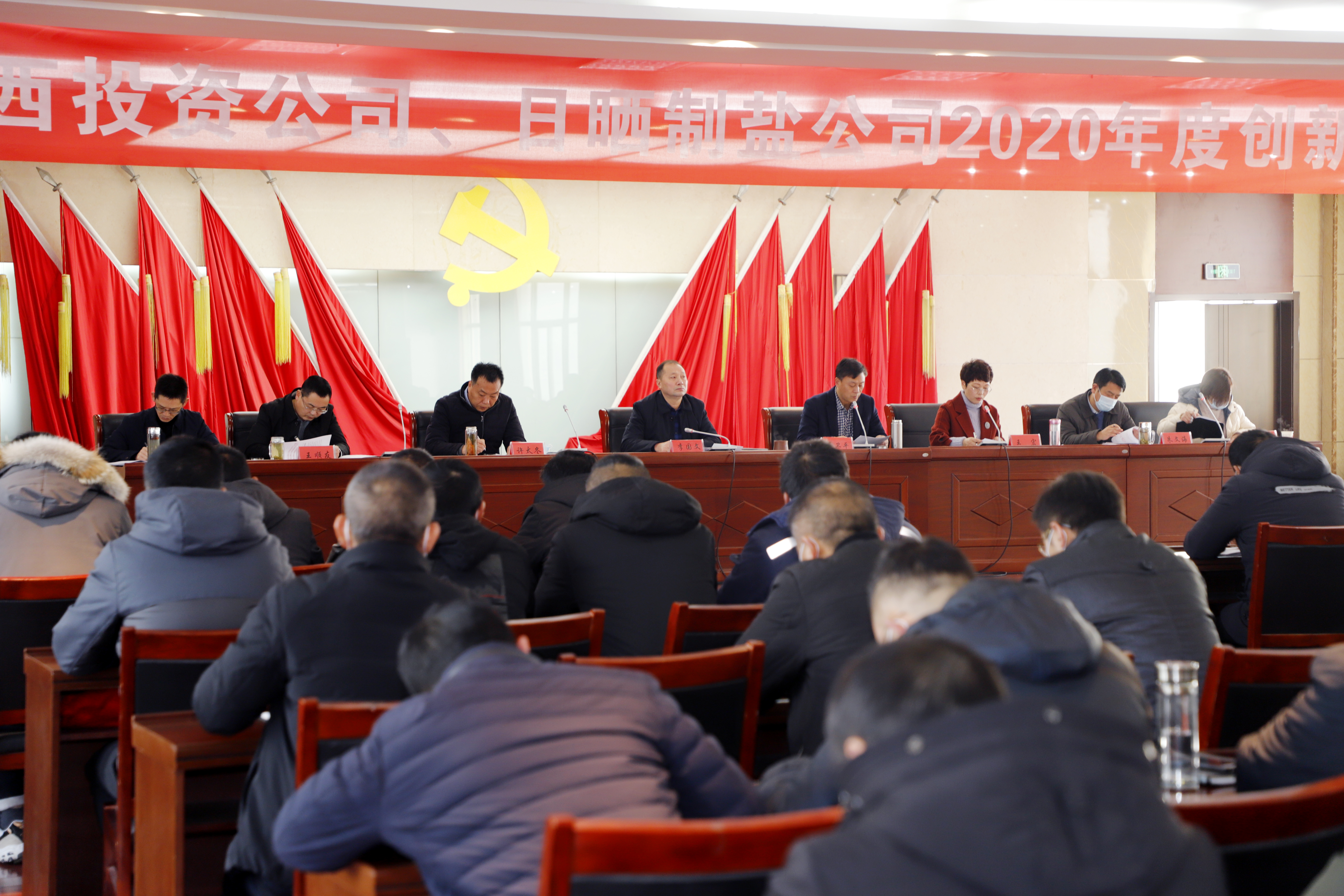 1月14日上午,灌西公司在机关五楼会议室召开2020年度创新创优表彰大会。投资公司党委书记、董事长、总经理李国文出席会议并强调,要大力弘扬创新精神,进一步营造比干劲、比业绩、比质量、比效率的强大氛围,树立新时代的标杆,激励全公司广大员工以先进为榜样,拼搏赶超、改革创新、落地见效,力争今年各项工作比去年更出彩。常务副总经理吴卫平作创新创优工作报告,副总经理许太东宣读创新创优评比办法,副总经理王顺友宣读创新创优表彰决定,党委副书记、工会主席王宏主持会议。
