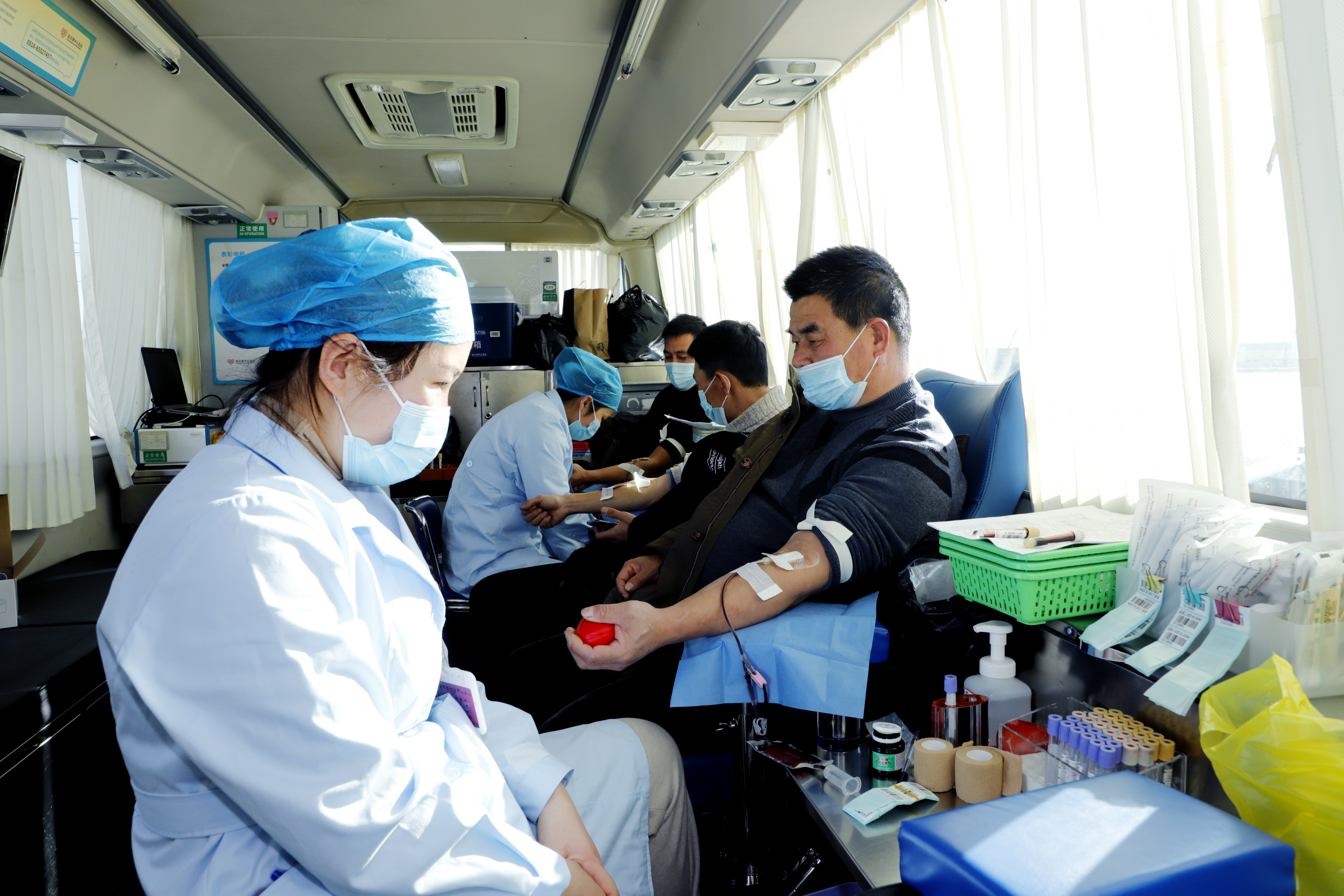 活动现场,无偿献血志愿者们积极参与,挽起袖子,献血献爱心。为保障献血安全,现场工作人员认真执行疫情常态化要求,进入临时采血点的人员一律扫码、测体温、带口罩入场,血站工作人员严格执行疫情防控采血标准,确保采血安全。