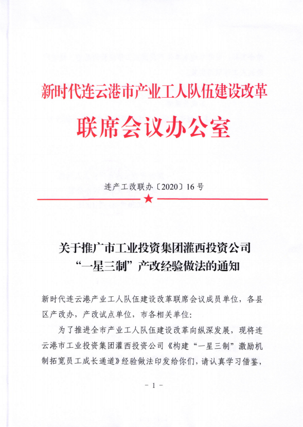 11月20日,新时代连云港市产业工人队伍建设改革联席会议办公室在全市推广工投半岛平台网站登录入口_半岛(中国)灌西投资公司“一星三制”产改经验。