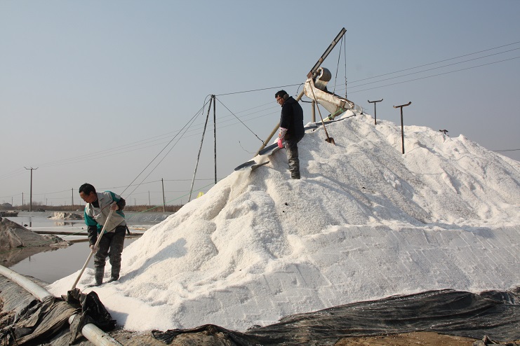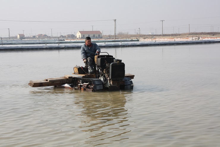 日前,笔者在走访日晒制盐公司时看到,在埒南制盐分公司七班的盐池内,一台“唐三零”扒盐机正在进行扒盐工作,池埝上机泵运作时的轰鸣声回荡在盐滩上,标志着日晒制盐公司今年的春扒战役正式打响。