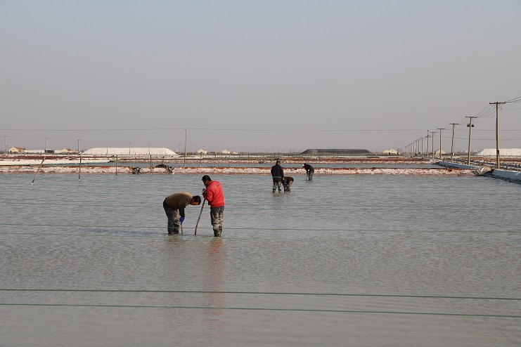 此次检查工作涵盖日晒制盐公司所有生产班组,检查人员由生产服务公司及两个制盐分公司人员组成,检查通过采取多点测量,取平均值的方式,确保准确性。检查过程中,检查人员手执测量尺与铁锹,深入到盐池中央进行认真仔细的测量,遇到盐层高低不齐的地方,检查人员还要多次测量,确保数据准确无误。据了解,此次抽查主要有两个个目的:一是为了检测各班组盐层年增长厚度及用卤量,作为计算年长盐量数据进行保存,并为年底各项结算工作收集数据;二是为了冬准工作做准备,通过实地抽查,检测出各班组盐层、卤水等存余量,为下一步冬准工作的顺利开展做好准备。(封杨)