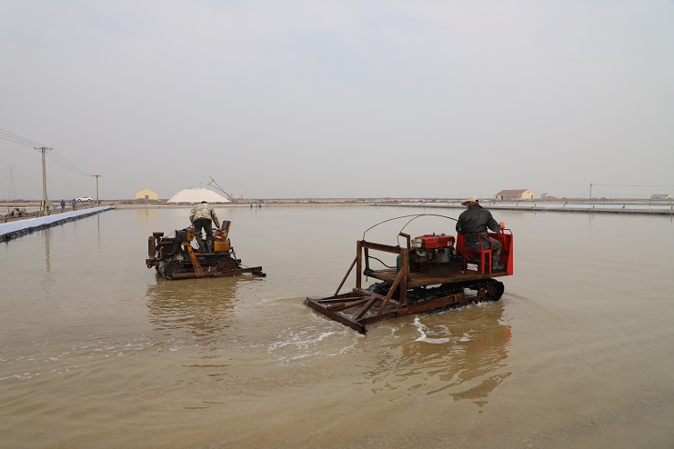 2月27日,半岛平台网站登录入口_半岛(中国)在日晒制盐公司生产一线看到,一大清早,工人们就开始在盐滩上忙碌着,为因气温较低而暂时停止的扒盐工作做好各项开机前的准备工作,确保扒盐、生产两不误。