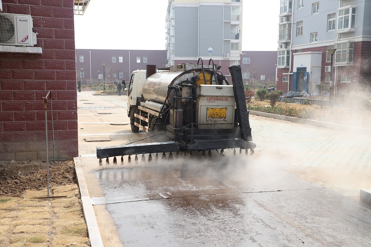 在工程现场,机械轰鸣声吸引了小区内众多居民驻足观看,他们亲历着小区的旧貌换新颜。施工中,喷淋式洒油车首先在路面上洒上一层油,随后,冒着热气的沥青从工程车上缓缓“淌”入沥青混凝土摊铺机,接着双钢轮震动压路机、轮胎式压路机依次上场,转眼间,原来的水泥路面上就铺上了平整的沥青,再配合上去年完成的小区绿化工程,使小区的整个环境瞬间提高了一个档次,不经意间还以为身处市区之中。