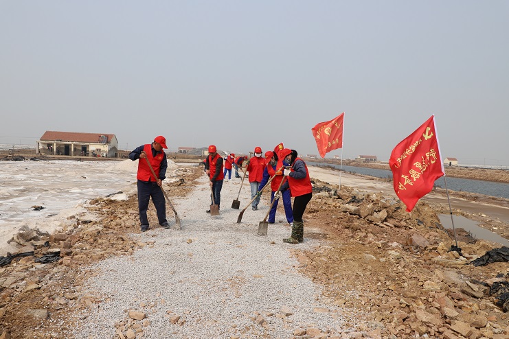 由于年前原盐销售工作的持续开展,导致日晒制盐公司部分班组道路损坏严重,不仅影响工人的上下班出行,甚至存在较大的安全隐患。投资公司团委在得知这一情况后,第一时间组织人员到现场进行勘察,并制定维修方案。