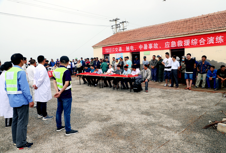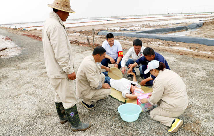 此次演练过程中,安全监管部李长军主持了这次演练活动,埒南制盐分公司职工及管理人员参与其中,演练模拟现场有三个:1、职工在滩头塑池堰上突然中暑(重度)。2、职工在廪基小盐化卤调卤中接触老化线路接头时不慎触电(伤害较重)。3、职工在上班途中三辆电瓶车相撞(跌伤较重)。在救援过程中,大家各司其职,齐心协力,配合默契,有条不紊成功完成了此次演练活动。通过这次应急演练,进一步提高了公司员工应对紧急事件的自我保护和防卫能力,保证员工在发生突发事件时,能熟练应对、有序救援,最大限度地减少事故带来的损害,切实保护员工的安全。
