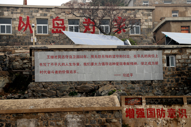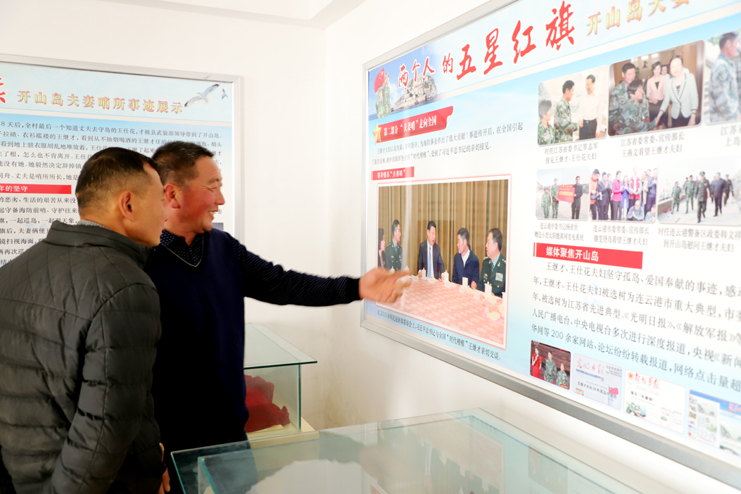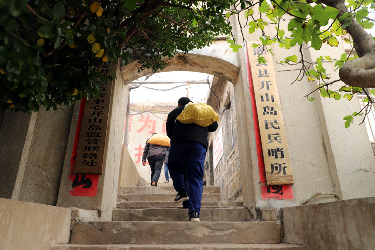 上午8点,在发动机巨大的轰鸣声中,渔船缓缓驶离港口。近一个小时的颠簸,开山岛出现在了视野里,由小到大,逐渐清晰。简易码头上,守岛民兵远远地冲着大家挥手,船上的人顾不上渔船的剧烈晃动,一个个扒着船沿热情回应着,所有人的脸上都写满敬意和期待。渔船随着海浪的节拍上下晃动着,班组长们登上码头,就紧紧握住守岛民兵的手,对他们守岛卫国,无怨无悔坚守和付出的爱国奉献精神表示钦佩。班组长们跟随着守岛民兵沿着王继才夫妇他们当年的巡逻路线,拾级而上,大家一边感受巡岛爬山的辛苦,一边聆听着守岛民兵讲解王继才夫妇32年守岛的艰难困苦和生离死别。