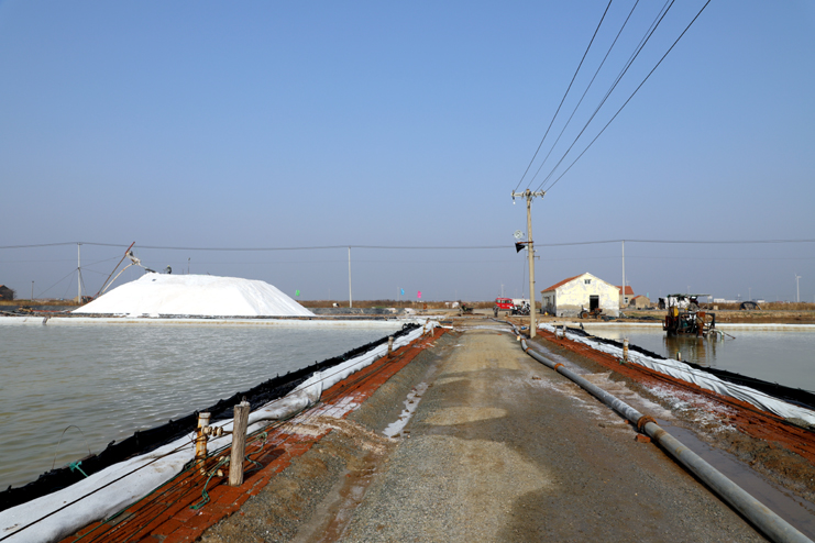“轰隆隆——”的盐泵轰鸣声伴随着扒盐机马达的嗡嗡声,3月25日下午,日晒制盐埒南制盐分公司13班率先打响“春扒”战役,万亩盐滩一片繁忙景象。